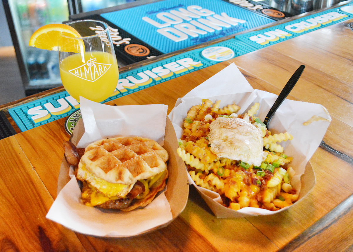 Dig into comfort classics with a twist—think fried chicken on a waffle bun, loaded crinkle fries, and cinnamon-sugar French toast sticks. Brunch is served every weekend from 10am–3pm and Mondays for industry folks (and everybody else 🤫) from 11am–3pm.